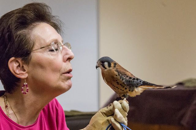 On Sunday, May 8, Julie Anne Collier of Wingmasters made a presentation after church. Wingmasters is an organization that rehabilitates injured birds of prey and also presents educational programs.